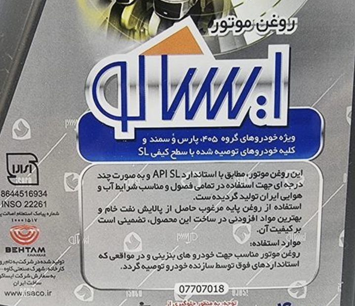 روغن موتور بهتام ۲۰W50 API SL حجم ۴ لیتر